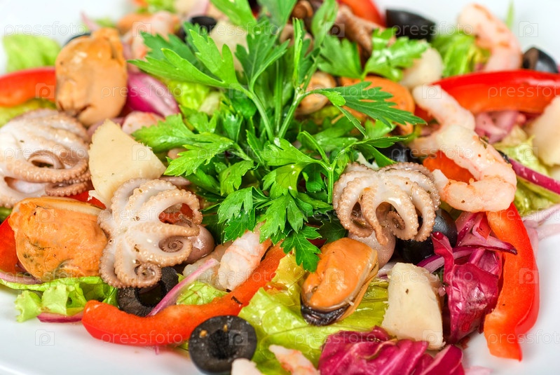 Закуска из различных морепродуктов и овощей