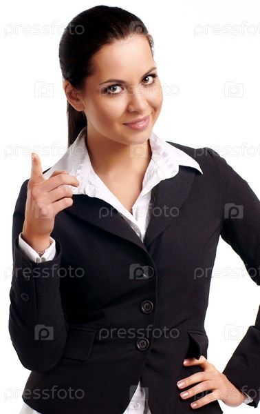 Красивая деловая девушка делает указывающий жест
