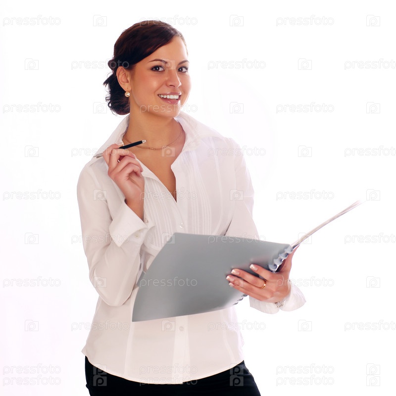 Портрет уверенной деловой девушки на белом фоне
