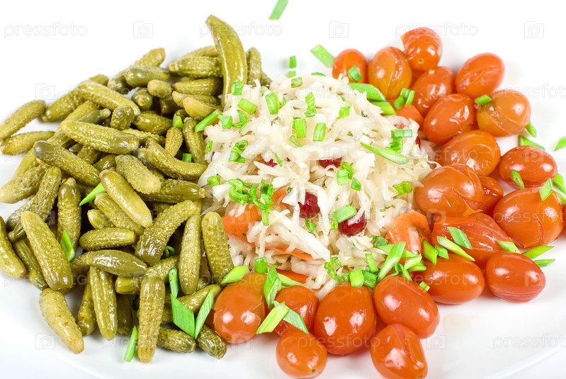 Маринованные овощи, изолированные на белом