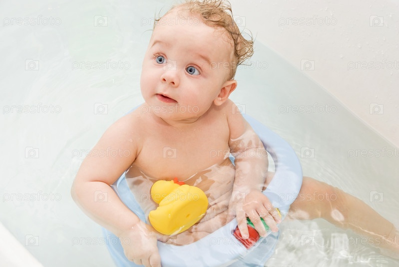 Маленький мальчик в ванне с игрушками