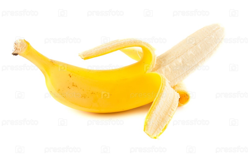 Крупным планом очищенный банан, изолированный на белом фоне