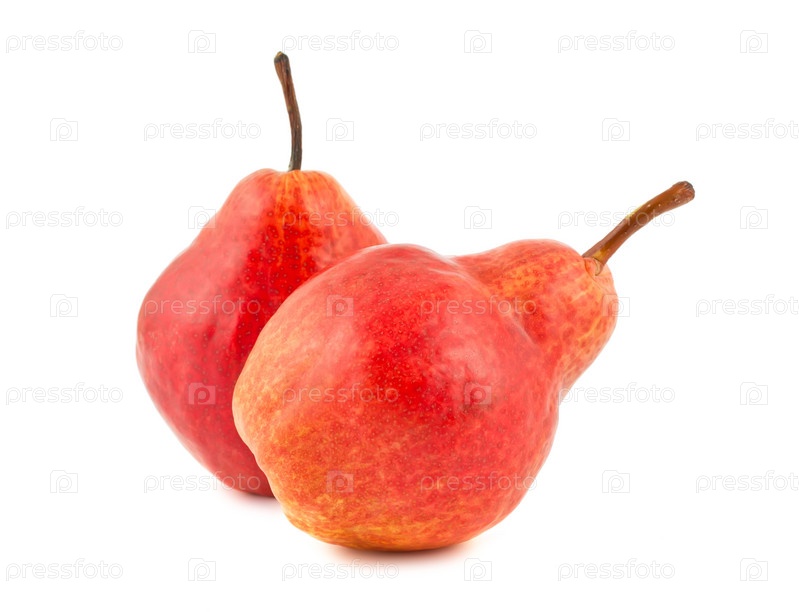 Две красные спелые груши, изолированные на белом фоне