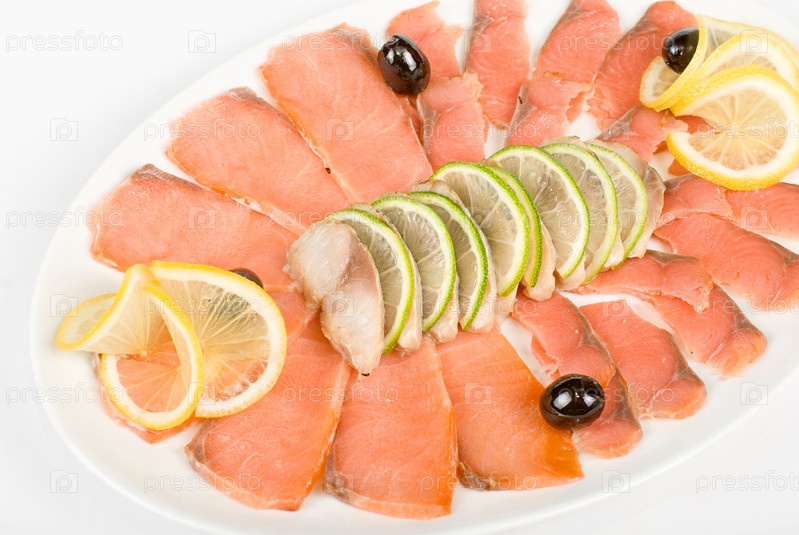 Ломтики рыбы на тарелке крупным планом
