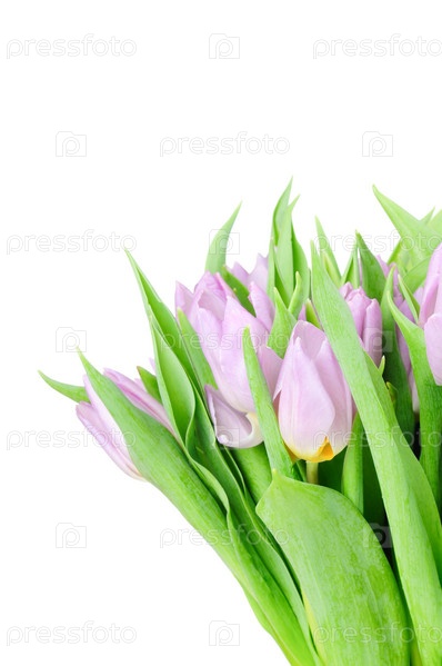 Фиолетовые тюльпаны изолированы на белом фоне
