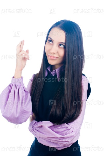 Девушка держит пальцы скрещенными