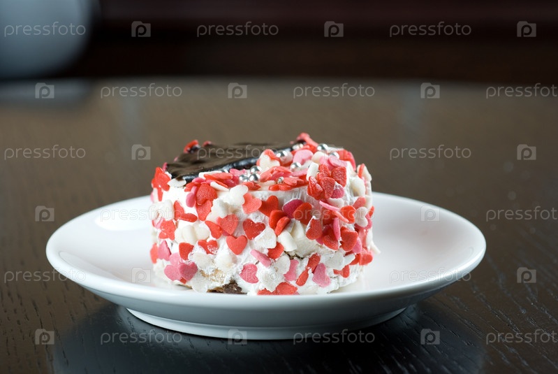 Пирожное с сердечками на столе