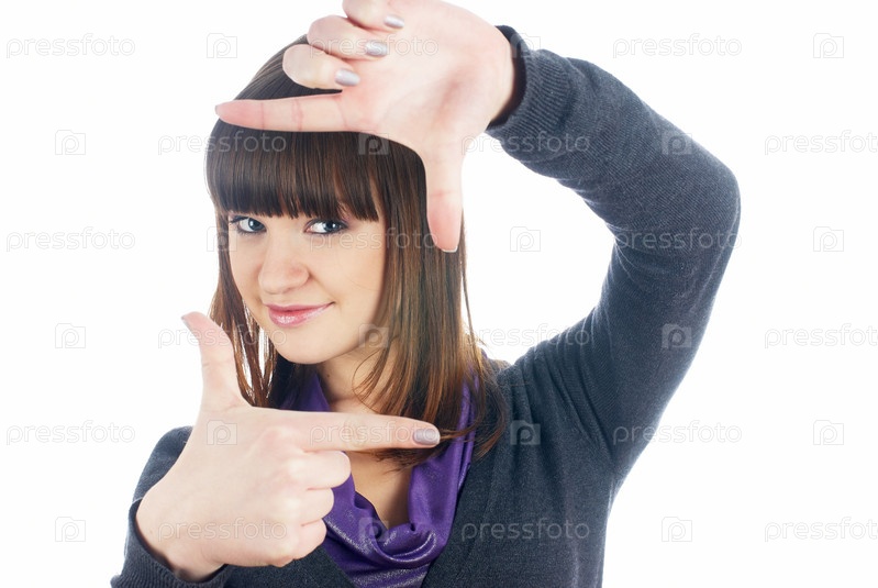 Девушка смотрит сквозь рамку из рук