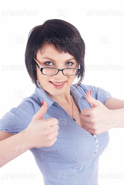 Молодая девушка показывает жест на белом фоне
