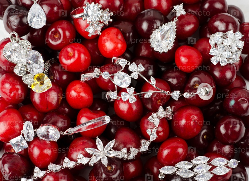 Драгоценности на вишне крупным планом