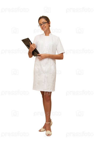 Красивая женщина врач на белом фоне