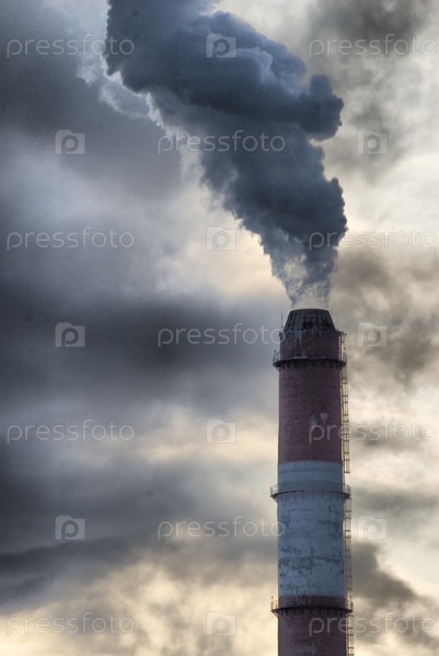 Загрязняющий дым, идущий по трубам завода