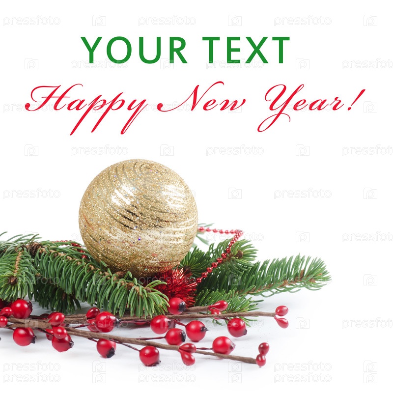 Елка и новогодний шар на белом фоне