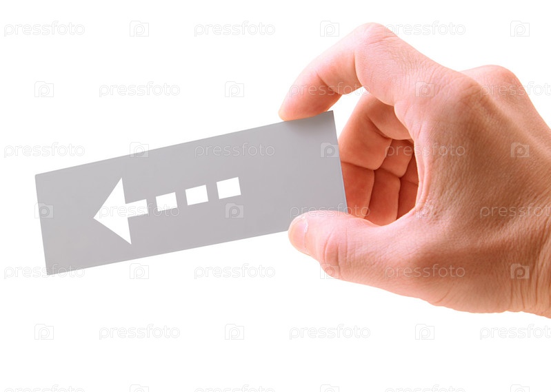 Рука с указывающей карточкой на белом фоне