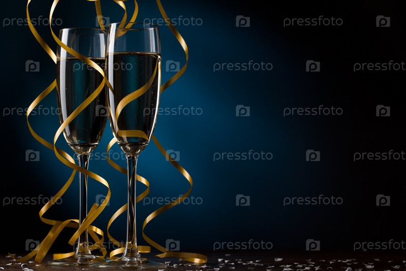 Два бокала шампанского на синем фоне