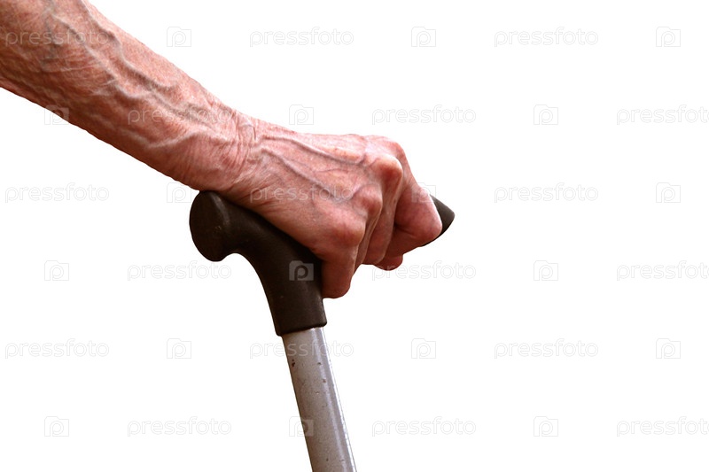 Рука пожилой женщины, которая держится за трость