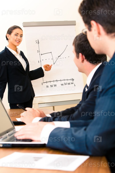 Фото уверенного оратора, дающего презентацию на деловой встрече