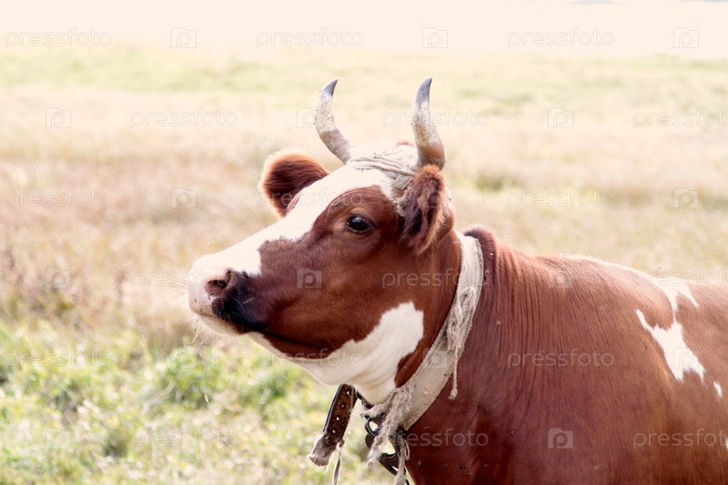 Корова на лугу крупным планом