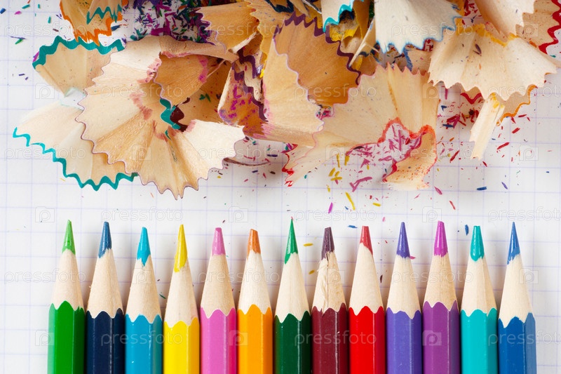Цветные карандаши и куча опилков