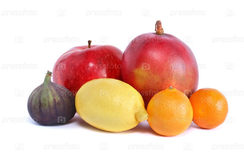 Различные фрукты на белом фоне