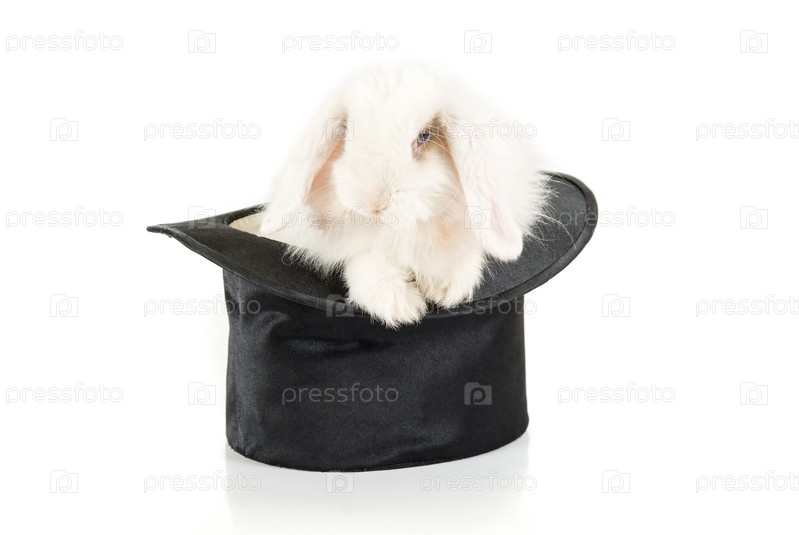 Белый кролик в черной шляпе