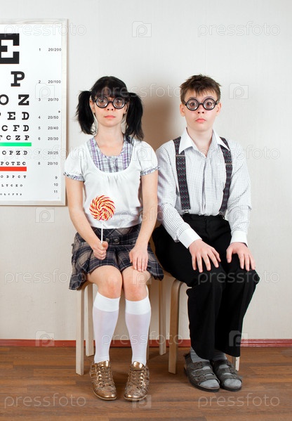 Парень и девушка в очках в кабинете офтальмолога