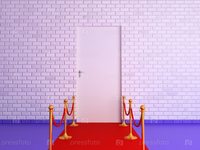 Белые двери со старой стеной и красным ковром