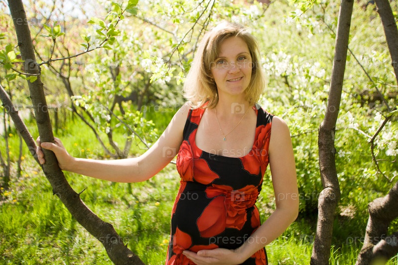 Портрет молодой беременной женщины, на фоне природы