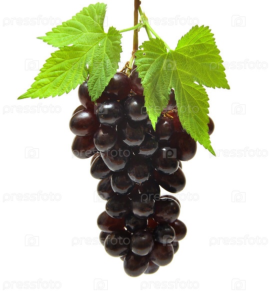 Черный виноград с листьями на белом фоне