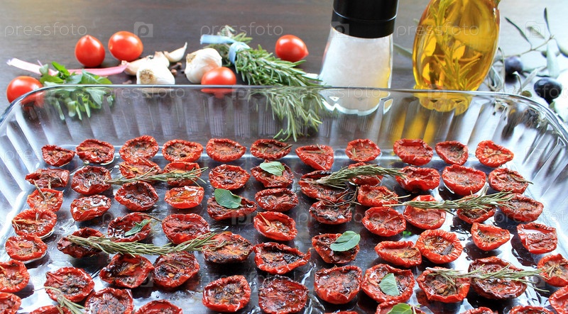 Вяленые помидоры черри с специями и оливковым маслом, средиземноморская кухня