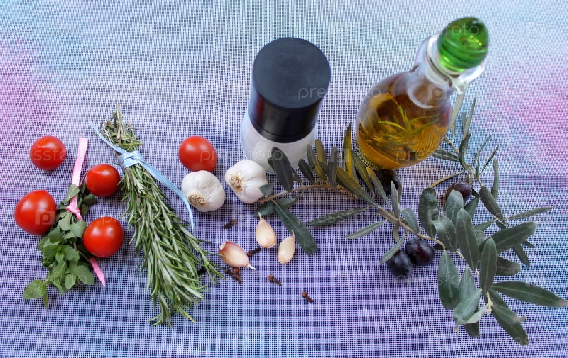 Томаты, приготовленные рывок специй и оливковое масло, средиземноморская кухня