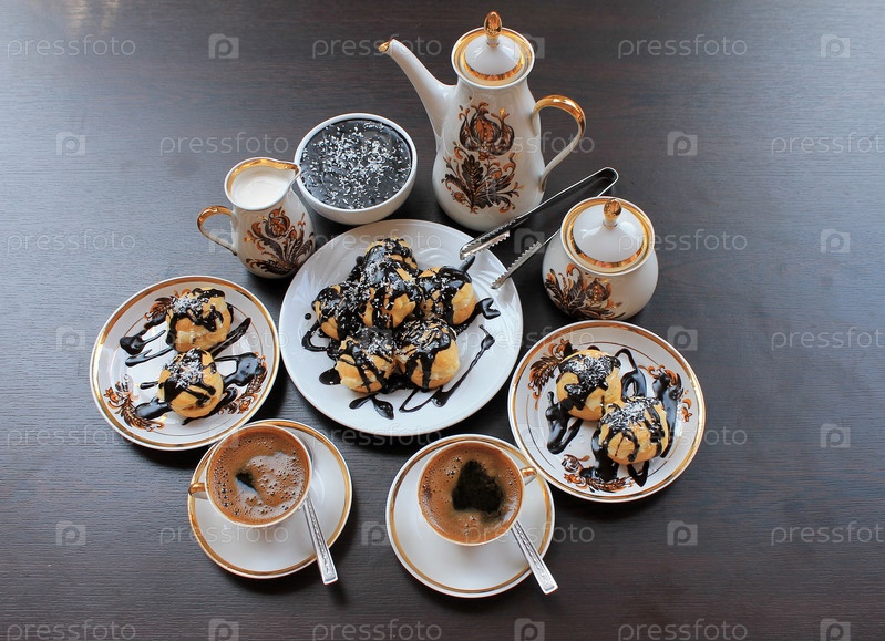 Запеченная в духовке наполнения и облили шоколадом и кофе Заварной крем