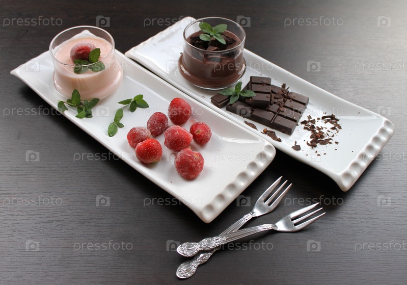 Пудинг с шоколадной крошкой и клубничным пудингом