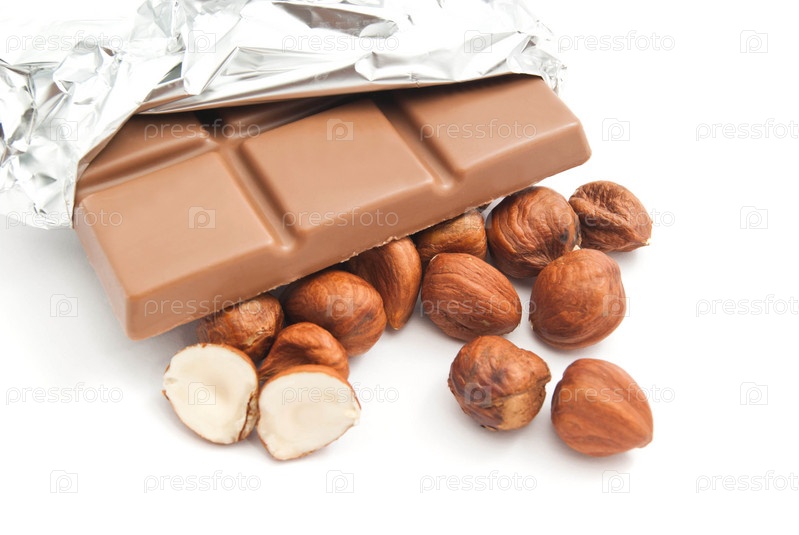 Шоколад и орехи на белом