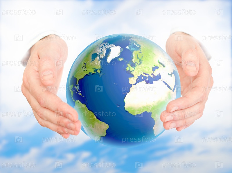 Руки и Земля. Концепция сохранения зеленой планеты. Символ защиты окружающей среды