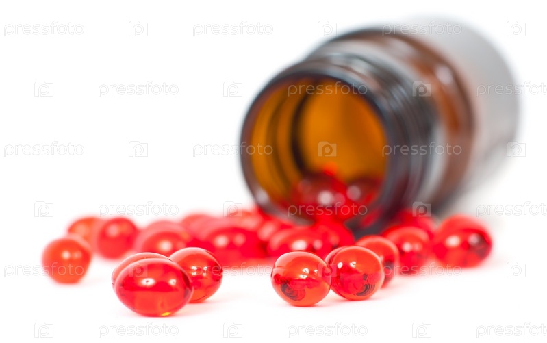 Таблетки и банка на белом фоне