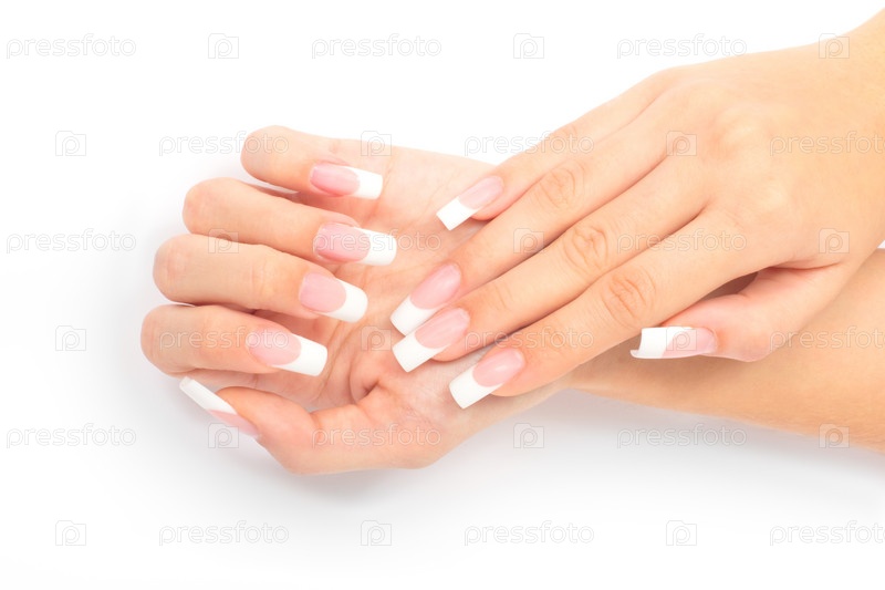 Женские руки с французским маникюром. Изолированные на белом фоне