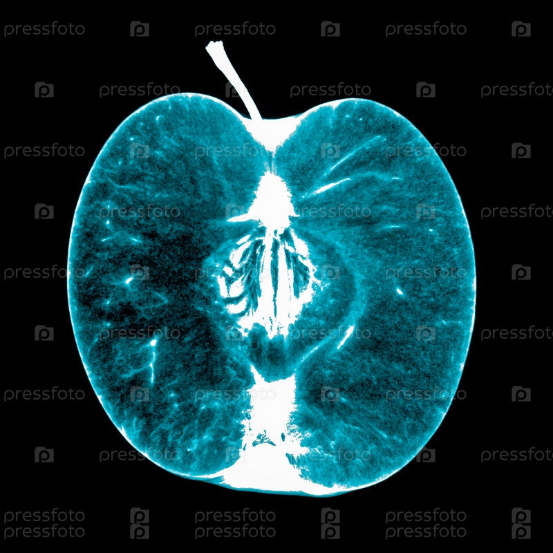 Рентген яблока на черном фоне