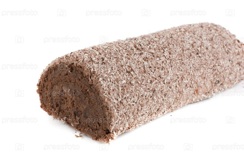 Швейцарский шоколадный рулет на белом фоне