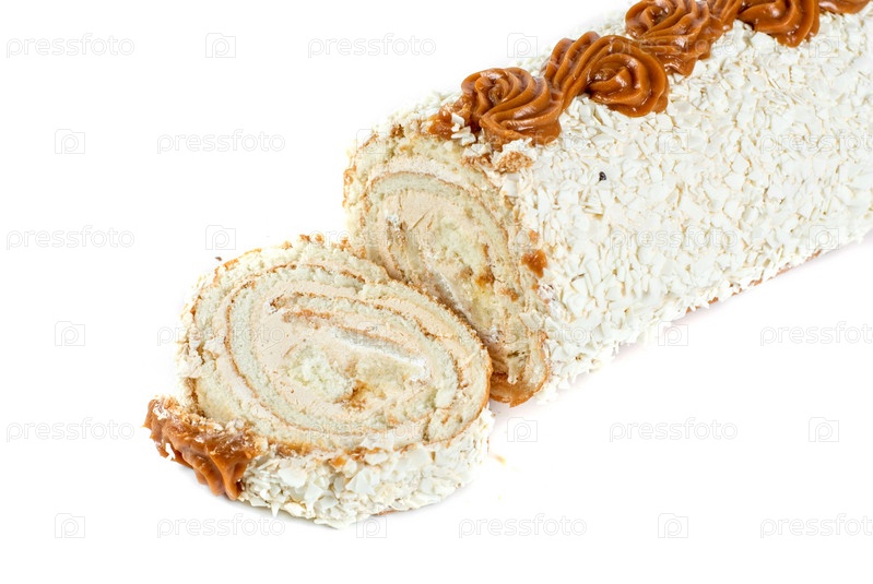Швейцарский рулет на белом фоне