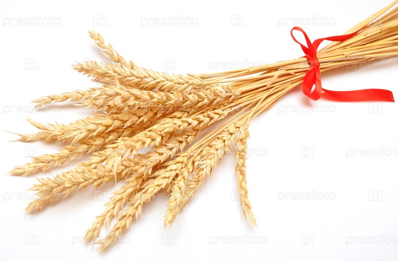 Колосья пшеницы с красной лентой на белом фоне