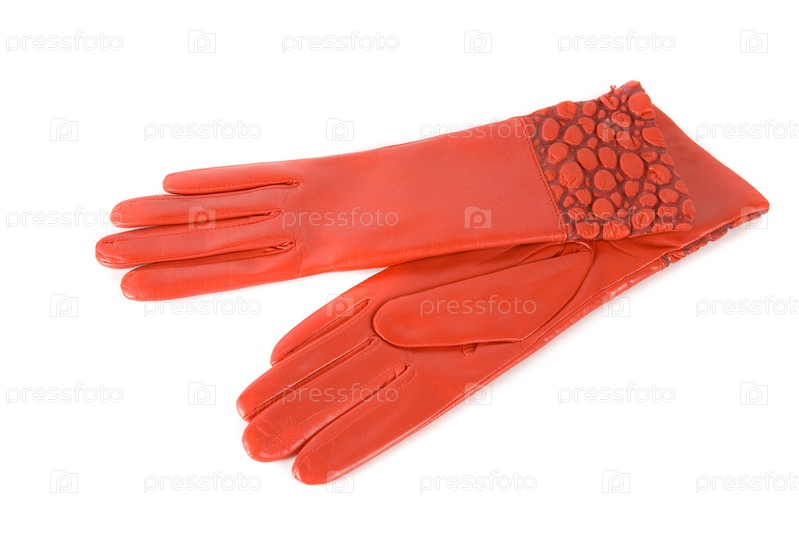 Красные кожаные перчатки на белом фоне