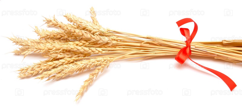 Колосья пшеницы с красной лентой на белом фоне
