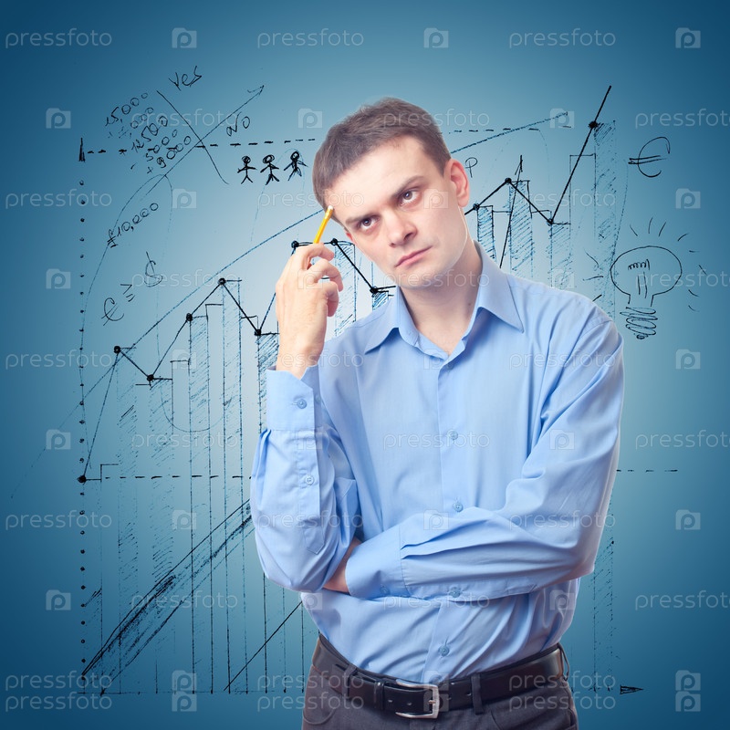Задумчивый бизнесмен на фоне графиков