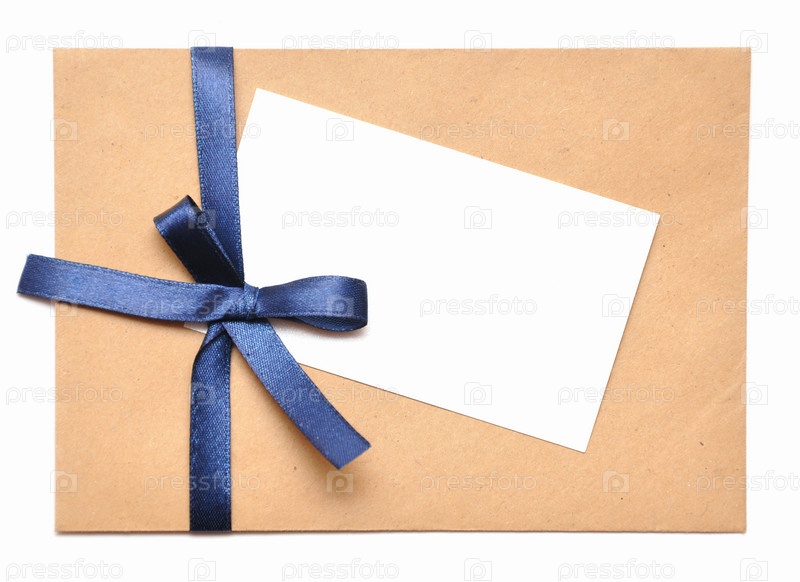 Конверт с бантом и запиской. Поздравление