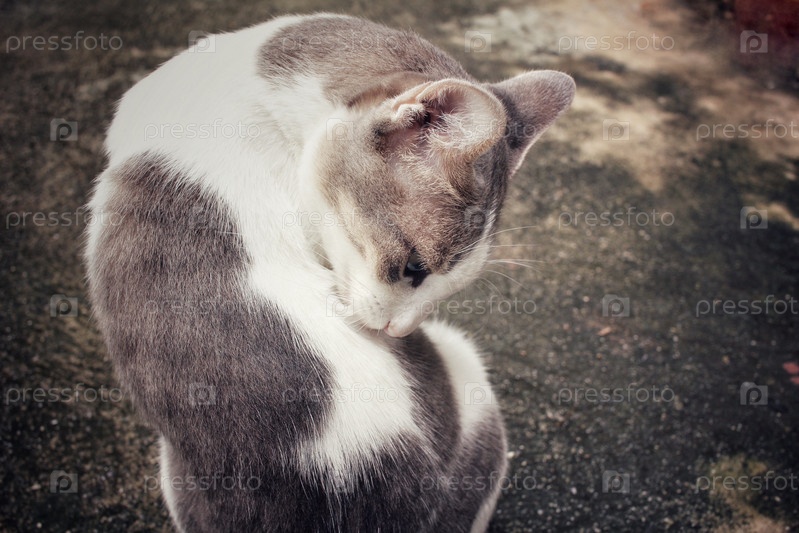 Кошка лижет