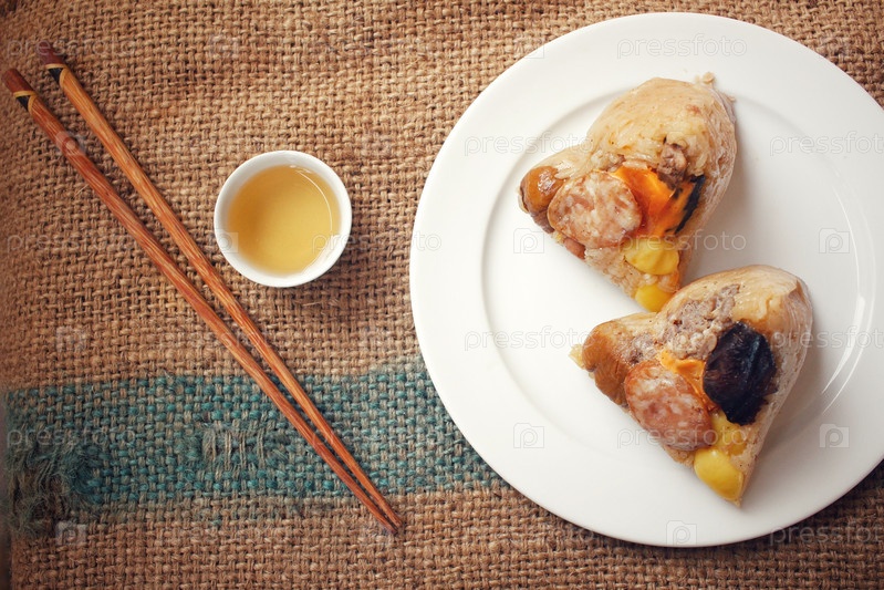 Цзунцзы с горячим чаем