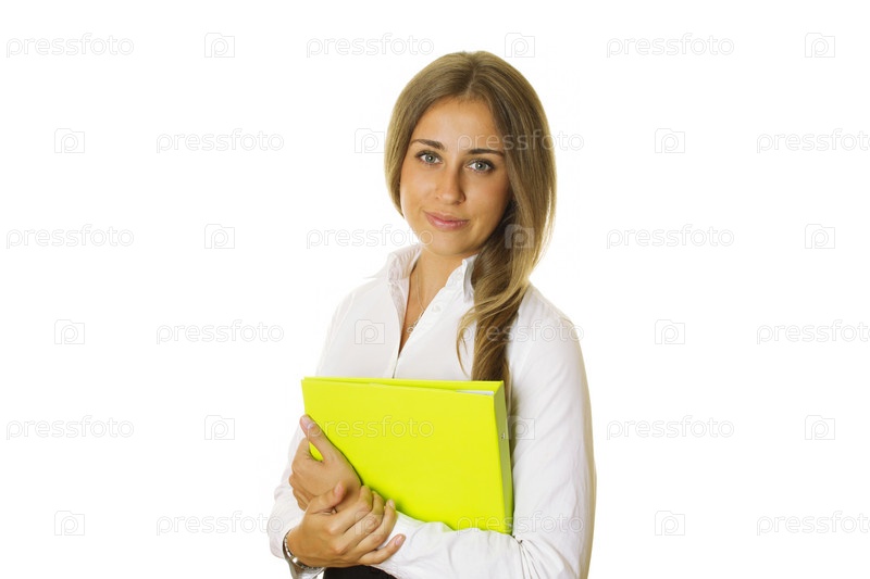 Привлекательная деловая женщина с папкой в руках