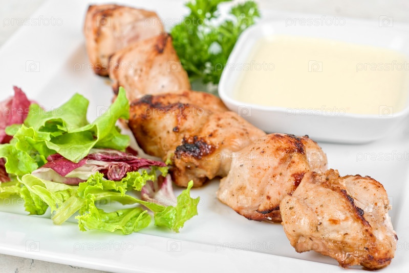 Шашлык с овощами и соусом