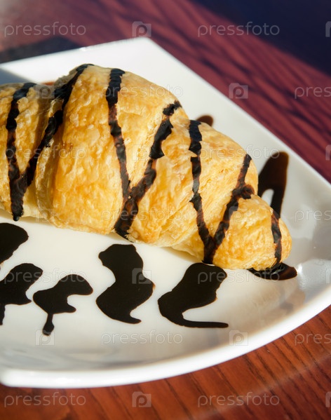 Свежий круассан на блюде крупным планом